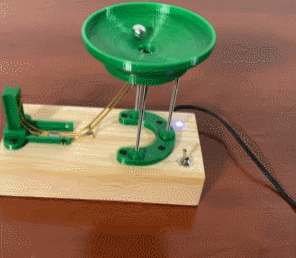 This marble machine has 3D printed parts. It has a convenient switch on the side that you can use to turn the device on/off. This is rare but you can find it on sites on eBay.
