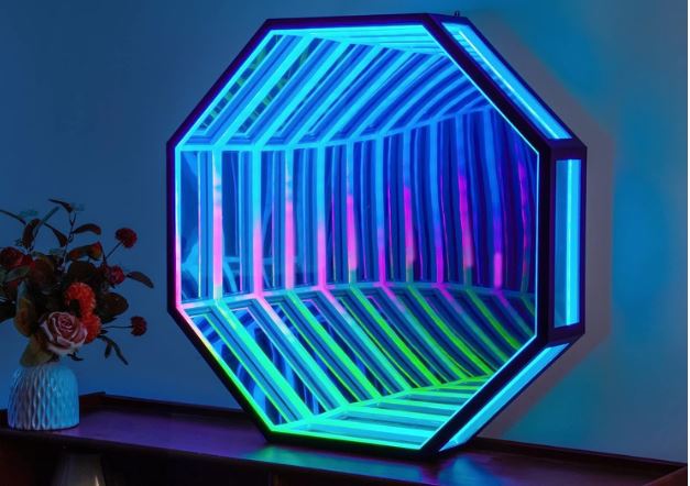 Infinity mirrors are easy to build and fun to look at. We have covered various small models in the past. This 27.5-inch Infinity Mirror Lamp is worth a look if you need a larger model. It has 358 effects for you to choose from. It can be put on your desk or hung on the wall. This octagon infinity mirror light comes with remote and app control.