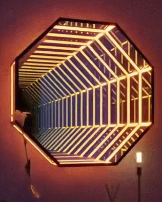 You can use this as a mirror when it is turned off. These infinity mirror lamps are available in hexagon, round, triangle and rectangle models. Smaller sizes down to 11.8-inch are also available.