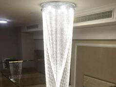 So you are looking for a chandelier that gives your place a more elegant look? This 7PM Double Helix LED Crystal Chandelier is worth a look. It has a stainless steel structure with K9 crystals. It also has 7 x 3W LED bulbs.