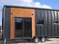 Here is another cool mobile home worth checking out. This 8 x 20′ Tiny Home is ready for your adventures. It is built on a 20′ flatbed utility trailer. It was sided with cedar and features metal roofing. The home is ready for your plumbing and electrical upgrades.