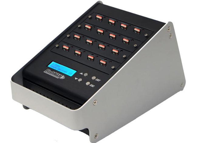 The FlashMAX 15 SD Duplicator has a max copying speed of 35MB per second. It supports all file formats and file sizes. It has Quick Erase, Full Erase, and DoD modes for data removal.