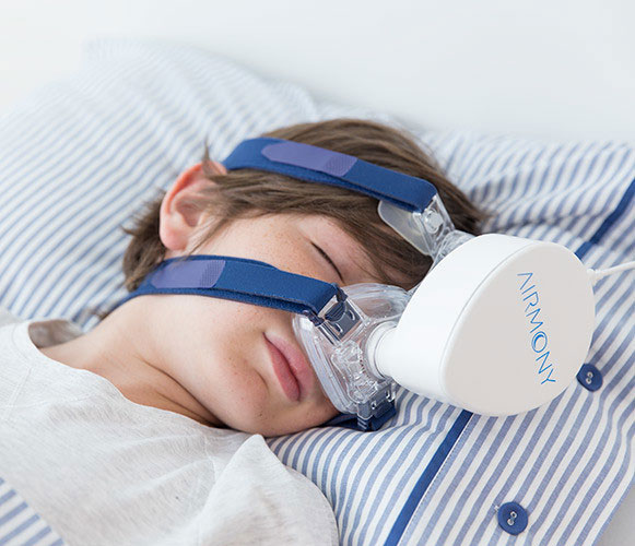 Meet Airmony : a portable CPAP machine designed for adults and children dealing with sleep apnea. This hoseless device comes with Bluetooth connectivity. You can power it using a simple USB power bank. Airmony keeps your airways open and records data that you can easily share with your doctor.
