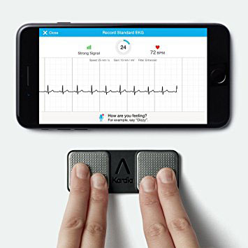 Meet the AliveCor Kardia: a smart ECG device that combines with your iOS or Android device to let you monitor the rhythm of your heart and share your data with your doctor. Kardia captures medical-grade EKG in 30 seconds or so. You will also be able to take voice memos.