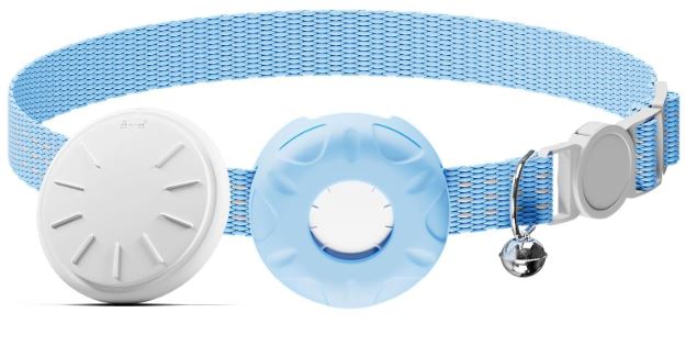 This cat tracker has a range of 250ft and up to 100dB sound. It features a waterproof silicone bracket to hold the tracker. The collar fits pets with neck sizes up to 13 inches. It has a tiny bell attached to it. The idea here is to use other Apple devices near you to find your pet’s location. The battery life lasts up to a year on standby and can be easily replaced.