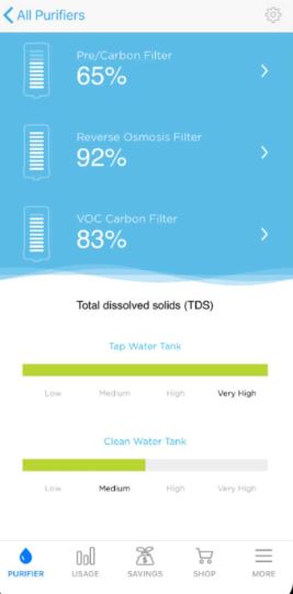 This water purifier has a 64oz glass carafe. It uses a 4-stage reverse osmosis system to clean your water. It has built-in water quality sensors to track water usage and TDS levels. You will be notified when you need to change your filter. These filters last up to 2 years.