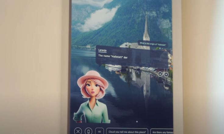 This is the Atmoph Window Yo: a smart 27-inch display with AI that brings 6K nature videos and sounds to your home or office. You can combine 5 of these windows to experience synchronized video. Users can spin the 3D globe and travel anywhere around the world. They can also upload their own videos.