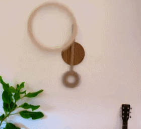 In order to pull this off, the artist had to get the weight and pivot points just right. Andy Shoemaker is the artist behind this kinetic sculpture. This piece has a bamboo plywood construction with steel ball bearings.