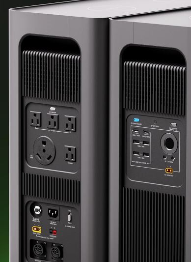 This model has 17 ports for your devices, including 2 wireless charging pads (15W), 4 x USB-A, and 2 x USB-C ports. There are also 5 AC and 2 DC outlets as well as a RV port. With fast charging, you can go from 0 to 80% in only 50 minutes. The AUTEL Home 3000 power station has wheels, so you can easily move it around. The battery could last you up to 10 years.