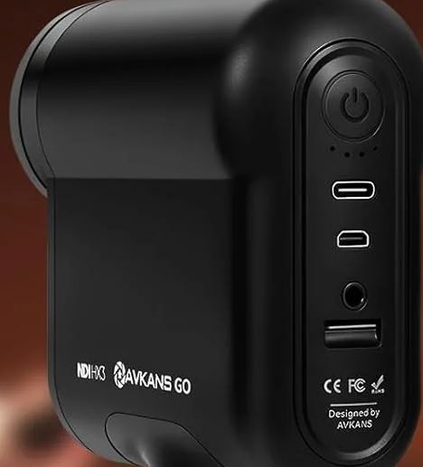 This camera feature app control, so you can preview and change settings on your mobile device. It has up to 6 hours of battery. It supports NDI HX3, SRT, HDMI, USB, or PoE connection. It has built-in microphones but you can connect external audio sources. AVKANS Go has a USB-C and Micro HDMI out in the back as well as a 3.5mm audio port.
