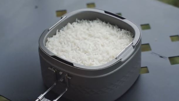 The Awada Lunch Box lets you steam rice on top and simmer other ingredients at the bottom. The handle is detachable and combines with the griddle plate for easy cooking. The Lunch Box has measurement marks. It comes with a strap that protects the box from bumps. This project is getting full funding on Kickstarter.
