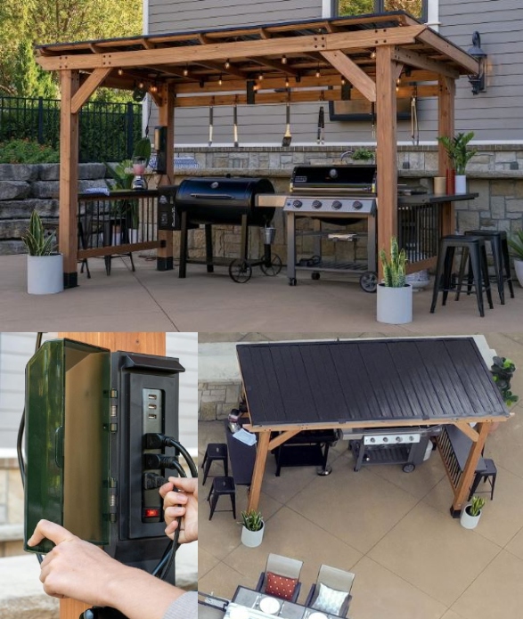 Many of us enjoy grilling food for our guests and family members each summer. Doing it under the sun is not fun though. The Backyard Discovery Saxony XL Grill Gazebo gives you a convenient place to grill plenty of food. This cedar wood gazebo has room for 2 full size grills and smokers. It has a 29 gauge brown steel roof that is wind resistant to 100mph. It also can handle 30 inches of snow.