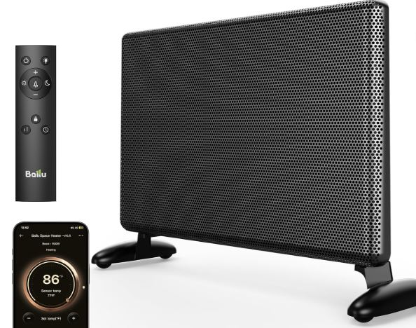 The Ballu Mica heater works with your smartphone for easy control. It is designed with user safety in mind. It has a flame retardant body, overheat & tip-over protection. This heater offers 180-deree wide heat coverage to keep you comfortable no matter where you sit in front of it.