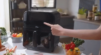 Here is another smart air fryer that comes with everything you need to cook for up to 6 people with less oil. The Bear 8-in-1 Air Fryer uses 360-degree heat circulation to cook your food evenly from all sides. It has an adjustable temperature 145 to 400F range. Its timer can be set up from 30 minutes to 9 hours depending on what you are cooking. There is also a large window for you to monitor your food.