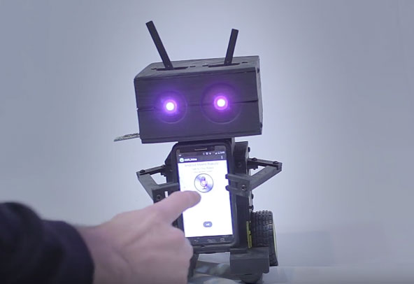 RiQ: an Arduino compatible robot with smartphone support. It has multiple sensors, including a light and sound sensor.