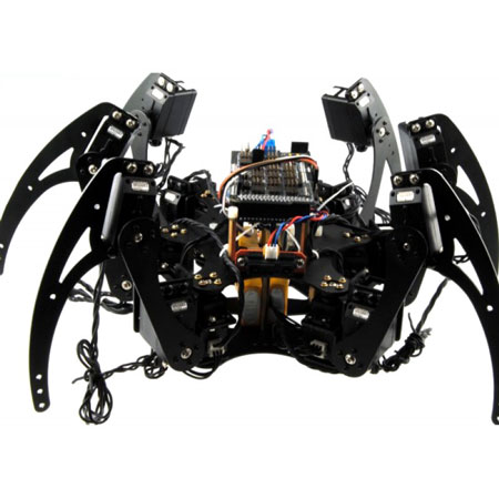 DFRobot Robot Hexapod Kit: comes with 18 CDS5516 high performance 300 degree rotation servos and an Arduino Mega 1280 microcontroller board.