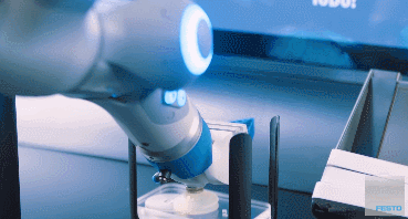 Meet the BionicCobot from Festo: a bio-inspired pneumatic lightweight robot capable of taking on a wide variety of tasks. Designed to collaborate with humans, this robot has powerful direct drives in the joints and 7 degrees of freedom. It has adjustable rigidity and can be programmed using a graphical user interface.