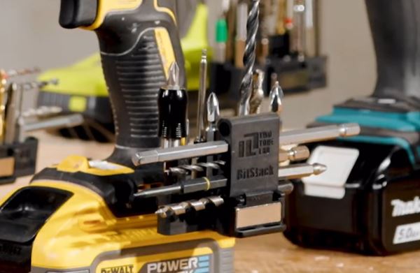BitStack lets you easily mount and remove bits. Its horizontal version has room for 12 bits and is more suitable for longer bits, up to 2.5 inches in length. The vertical version holds up to 8 bits. It has neodymium magnets to keep your bits in place. This project is currently on Kickstarter.