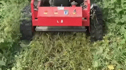 This robotic crawler mower can cover 1600m2 per hour. It has a remote control distance of 600 meters. It is powered by 2 x 350W motors and uses 20Ah battery.