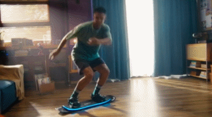 This is the Boardrop: a clever motion tracking game controller for snowboarding and skateboarding. It combines snowboard workouts with AAA gaming to improve your balance and strengthen your core. Boardrop works with Nintendo Switch, Meta Quest, Apple TV, iPhone, Windows, and Mac devices. It uses 4 vibration motors to give you a more immersive gaming experience.