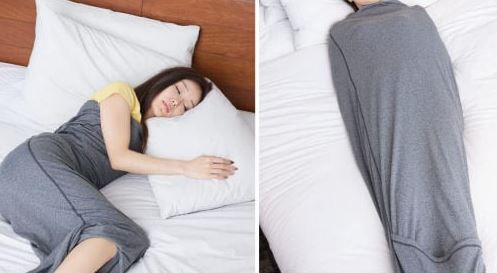Meet the Sleep Vantage Body Hug Bag: a neat sleeping bag that helps you relax. This 4-way stretchable sleeping bag is like a baby swaddle for adults. It is available in 2 sizes. It is made with polyester (95%) and polyurethane. It has an opening, so you can stick your feet out if you want more freedom of movement.