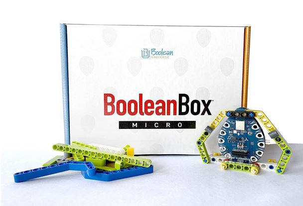 The Boolean Box Micro is compatible with top brick brands. It comes with everything you need to get started, including wires and lights. You can add more blocks for complex projects. More information is available here.