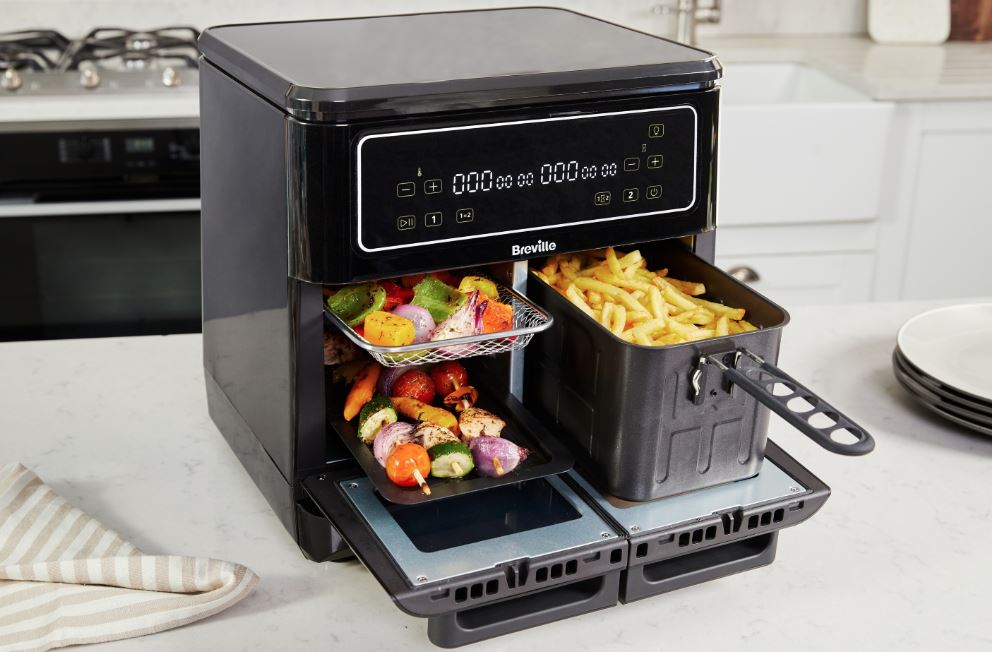 Breville is one of our favorite brands when it comes to kitchen appliances. Their latest kitchen tool lets you cook your favorite meals with less oil. The Breville Halo Flexi Air Fryer comes with 2 x 5.5L zones and a large mesh cooking tray. It has a sync function, so your 2 foods will be ready at the same time. The Match function cooks at the same temperature and time.