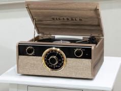 This briefcase vinyl record player is compatible with all portable audio devices and plays LPs (33 1/3, 45, and 78 RPM). Not super expensive either.