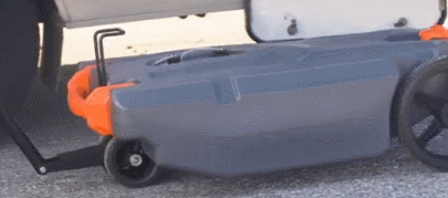 Transporting wastewater from your RV when a direct sewer hookup isn’t available shouldn’t have to be a hassle. A portable RV tank can help with that. Take the Camco Rhino 36-Gallon Portable RV Tote Tank for instance: it saves you effort carrying waste from your RV to a dump station. It has large back wheels to take on any terrain. The front no-flat front wheels are steerable.