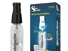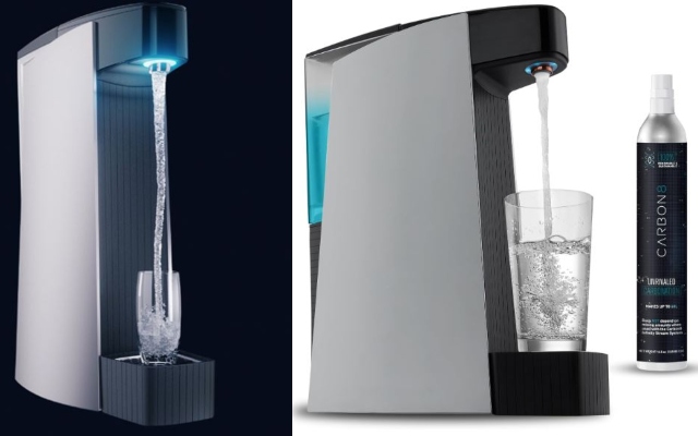 So you want to make your own sparkling water at home without a whole lot of effort? The Carbon8 One-Touch Seltzer Maker can help. It has a turbine and carbonator that mixes water and CO2 as it dispenses your drink. It has a bottle free design.