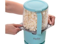 Here is a cool kitchen gadget that lets you make microwave popcorn for yourself more conveniently. The Chef’n PopTop is made of high-heat resistant silicone and can make up to 10 cups of popped popcorn. To get started, just add kernels to the fill line, add oil if you want, close the tabs, and microwave for a few minutes. The top opens as your popcorn pops.