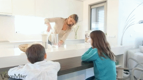 Here is another vegan milk maker that lets you make plant-based milk from any nut, grain, or seed. It takes 1 minute to make 1 liter of milk, 1 minute to squeeze the pulp with the mortar and another one for cleaning. You can use it with a hand blender or food processor.