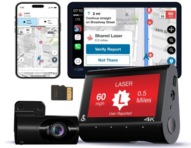 This camera provides you with notifications on red light cameras, speed traps, and a lot more. It combines with the Drive Smarter app to let you monitor your car from your phone. You can also create time-lapsed videos of your drives with Trip Clips.