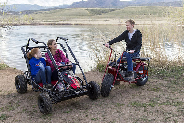 Meet the Coleman Powersports KT196: an off-road go-kart ready for your fun adventures. It has a gas powered engine (196cc engine 6.5hp) and can handle up to 400 lbs. The kart is fully automatic with rack and pinion steering. It has a top speed of 31 mph.