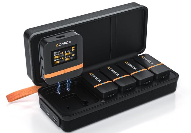Every video pro knows the importance of investing in high quality microphones. The Comica Vimo Q is a lavalier microphone system with 4 transmitters and a receiver. It is compatible with iPhone, Android, and PCs. It is ready for livestreaming and records 48kHz/24-bit sound.
