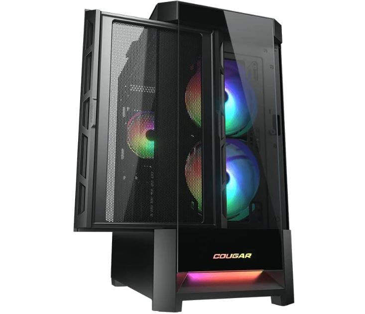 Here is another cool PC case for your next gaming or business computer. The COUGAR DUOFACE Mid-Tower Case has two front panels. It has a tempered glass panel to show the lights inside the case and an airflow panel. It has 2 x 140mm ARGB fans and a 120mm ARGB fan. A RGB button is available for changing light effect.