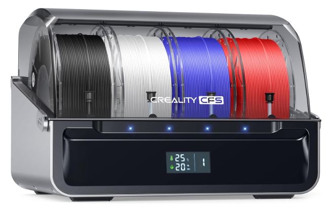 The CFS has an airtight design to protect your filaments from absorbing moisture from the air. It can identify RFID-tagged filament. It comes with other convenient features, including filament run-out and tangle detection. It also features auto filament switch so it feeds it as required.