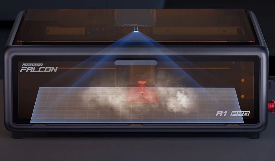 Meet the Creality Falcon A1 Pro: a new blue laser engraver made with small businesses and creators in mind. It can engrave and cut over 350 materials, including acrylic, wood, leather, and ceramics. It features app connectivity, so you can get real-time updates on your phone. The Falcon A1 has a touchscreen display for easy control without a PC.