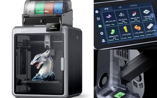 So you would like to print 3D models in multiple colors without a whole lot of hassle? The Creality K2 Pro Combo Multicolor 3D Printer has you covered. This dual camera 3D printer has a build volume of 300 x 300 x 300mm. It has a printing speed of 600mm/s and lets you use up to 16 colors. Its cameras can record failures to alert you to any issues. You can also use them to create timelapses of your prints.