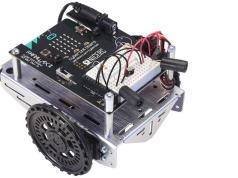 The Cutebot has dual high speed motors to get around. It has an ultrasonic distance sensor to avoid collisions and 2 line-tracking light sensors. It has an I2C port for more sensors.