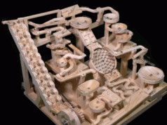 Dedi Kroya is behind some of the coolest motorized marble machines we have tested. They are simple, compact machines that move a bunch of tiny balls on a handmade track. This particular model has an Indian Rosewood wood construction. It brings the marbles to the top and drops them onto a pre-built track.