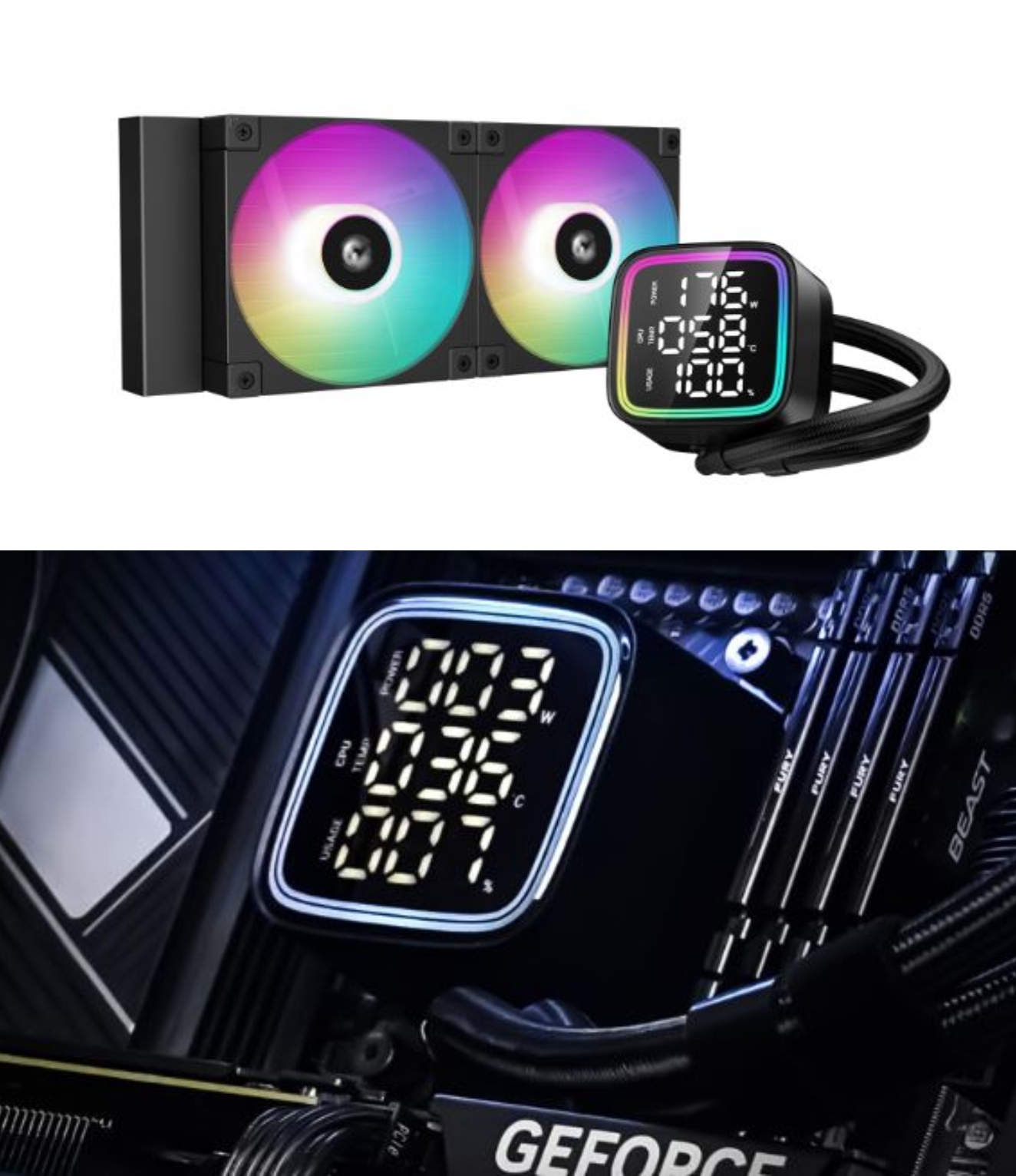 The display will flash to warn you when the CPU temperature exceeds the 85C mark. This cooler has a pump that rotates at up to 3400RPM with a noise rating under 21dB. It is compatible with Intel LGA 1700/1200/1151/1150/1155 and AMD AM4/AM5 systems.