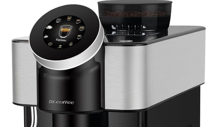 Here is another coffee machine that makes you a variety of delicious drinks like a pro. The Dr. Coffee H1 Coffee Machine is a fully automatic espresso maker with 6 beverage options for you to choose from. It has a 4-inch smart display and rotary switch. It can make you espresso, hot water, Ristretto, and other types of delicious drinks. This machine is 1450W rated.
