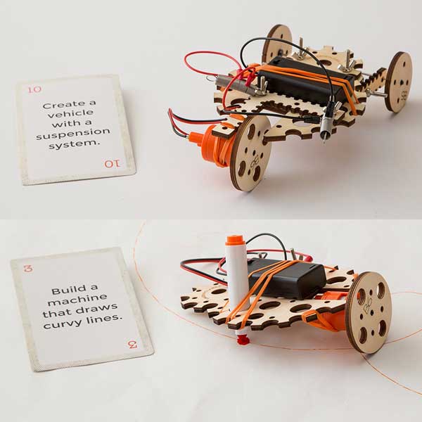 Meet the Tinkering Labs Electric Motors Catalyst: a STEM toy that gets your kids familiar with basics of robotics, engineering, and robotics. It comes with motors, wires, battery, and everything your kids need to create their own robots. It comes with over 50 parts and 10 challenge cards.