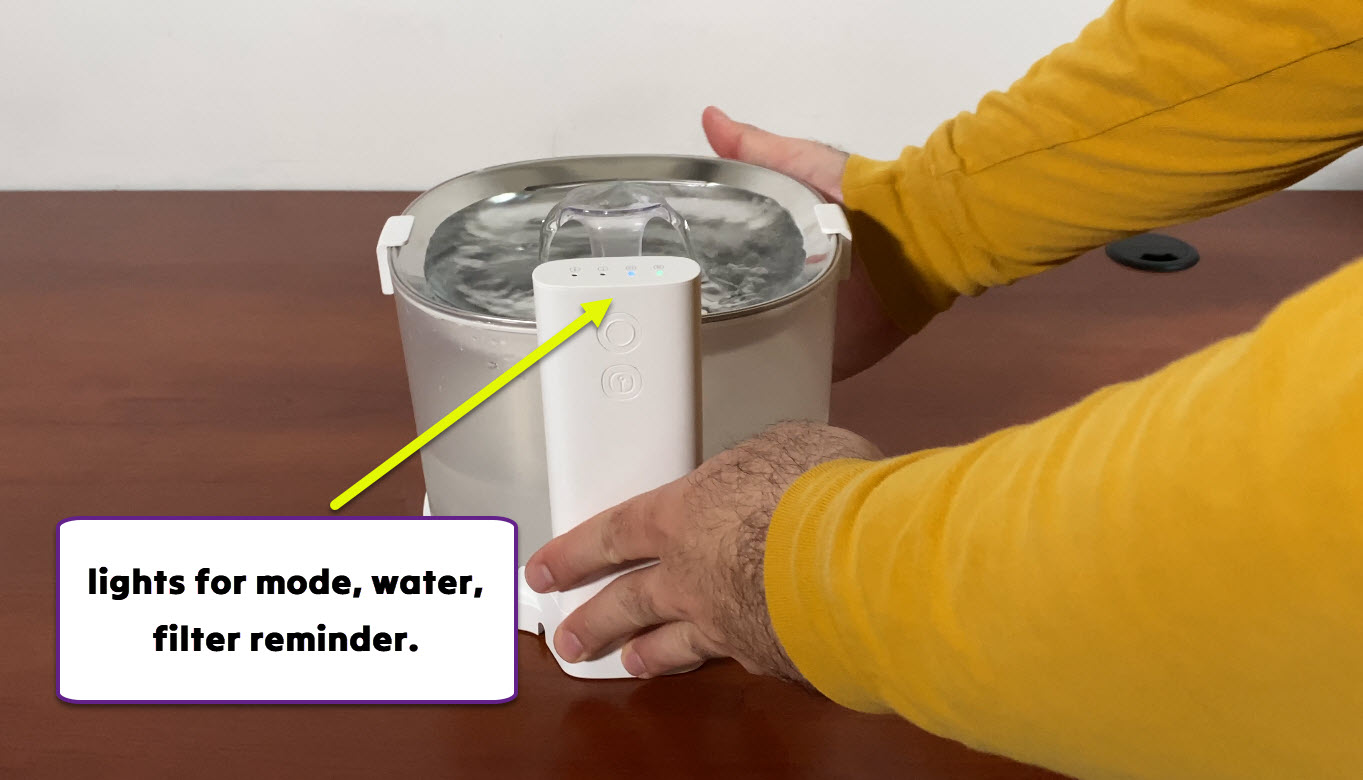 Our Elfin Fountain was a breeze to set up. It came with a sleek base and removable components, so you can clean everything fast. The filter is easy to install and takes care of hair and other particles. To turn on the fountain, you have to press the button on the back of the base. There are two modes for you to choose from: Timer & Intelligent. In timer mode, water is given to your pets for 20 seconds every 15 minutes.