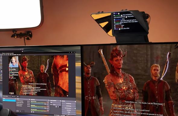 Prompter can automatically mirror any app, file, or browser you move on its screen. It uses a beamsplitter glass to give you crystal clear picture. You can use Camera Hub to manage your script, chat, and camera in one place.