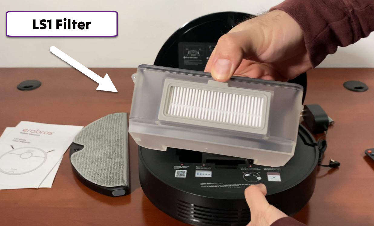 The erabros LS1 robot has anti-drop sensors. We couldn’t get it to drop off our desk or get in trouble around the stairs no matter how hard we tried. The dust bin is very easy to remove. Unlike a few other LiDAR vacuums that we have tested, this one has its water tank separate from the dust bin. You just have to make sure you remove the mop before docking.
