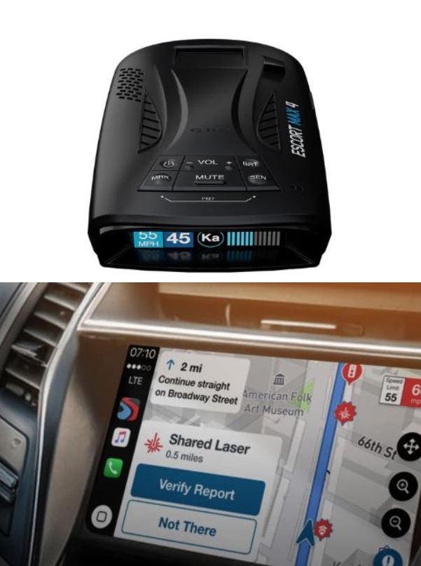 Here is another radar detector that helps you avoid unnecessary tickets on the road. The Escort MAX 4 has accurate filtering to reduce false alerts. It has built-in GPS and Bluetooth connectivity. Thanks to its detection range, you will be able to stay aware of threats sooner. This model is CarPlay and Android Auto compatible.