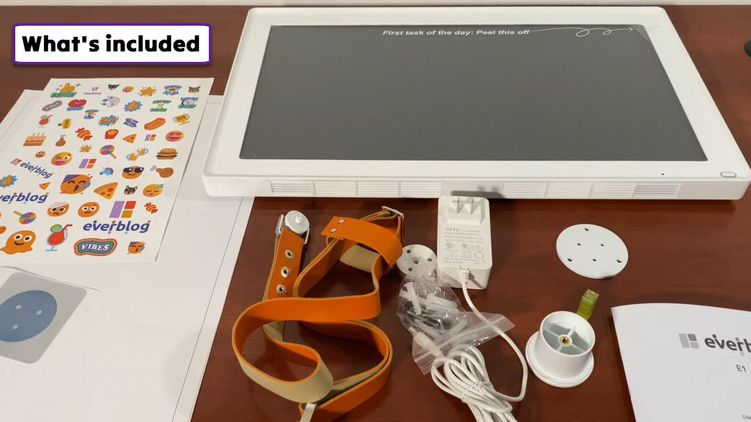 I don’t know about you but it is a struggle for our family to get all our chores done on time. We all have separate calendars on different devices that are not easy for everyone to keep up with. The Everblog 21.5-inch Digital Calendar comes in handy in these situations. It has a large display that makes it easy to keep up with your events, to-dos, chores, and everything in between. You can even encourage your kids to work towards earning a reward for getting chores done. The good folks at Everblog were kind enough to send us one to test. Let’s see what was included: