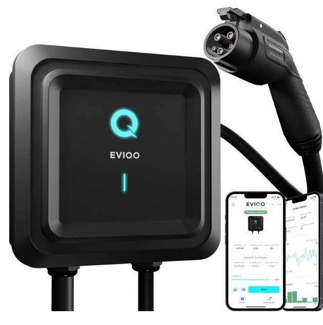 Here is another electric vehicle charger that combines with your phone to let you conveniently charge your car in your garage. The EVIQO Level 2 EV Charger is a 40amp level 2 charger that works with all EVs and plug-in hybrids in North America. It has an app that lets you put charging on a schedule.